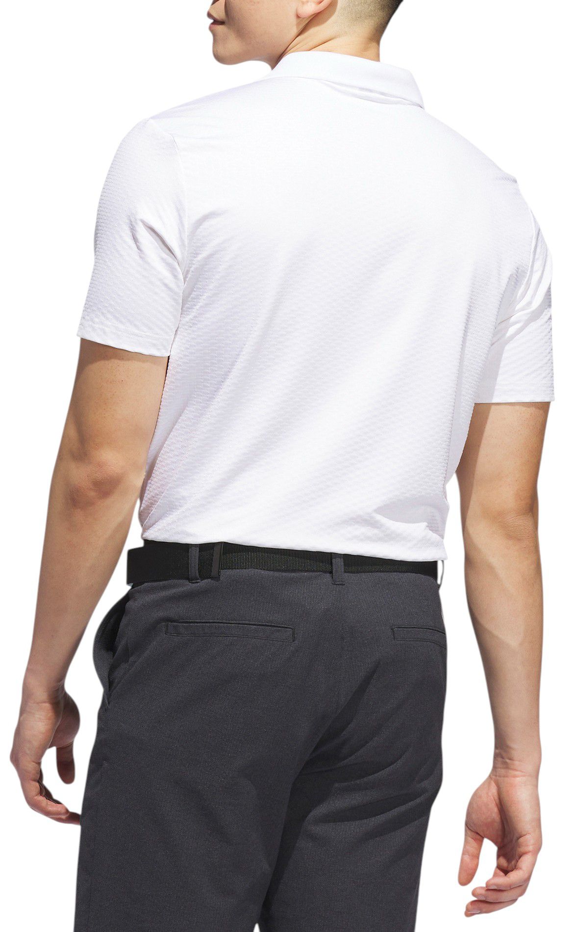 Count on the classic style and stretchy comfort of this adidas golf polo for casual rounds and more. The textured knit delivers an elevated look and feel on the course and beyond.
