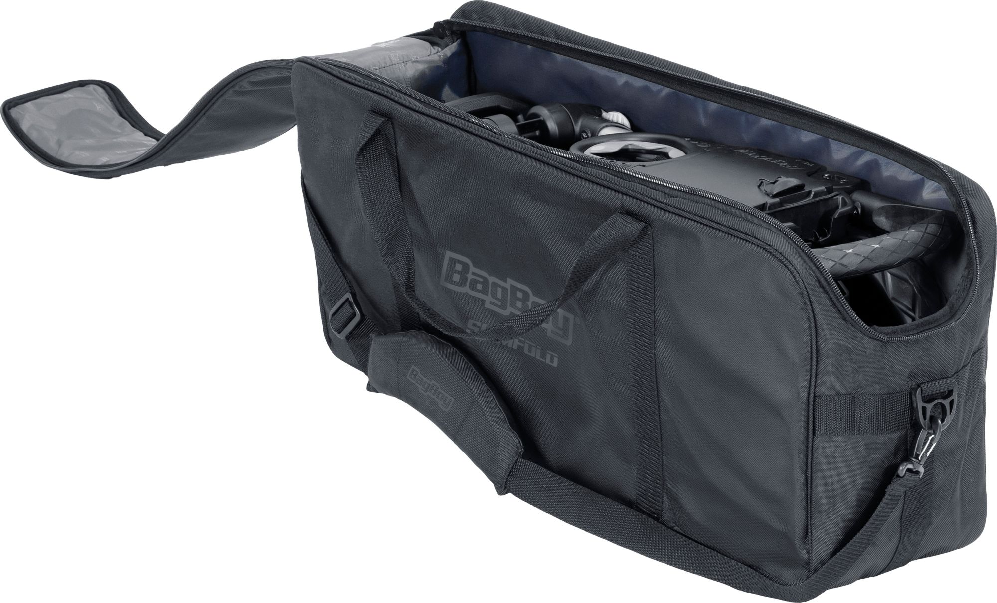 Elevate your golfing experience with the thoughtfully designed SlimFold Travel Bag. Tailored to the SlimFold Push Cart's exact specifications, this bag provides secure storage for your cart and ensures hassle free transportation to and from the course.