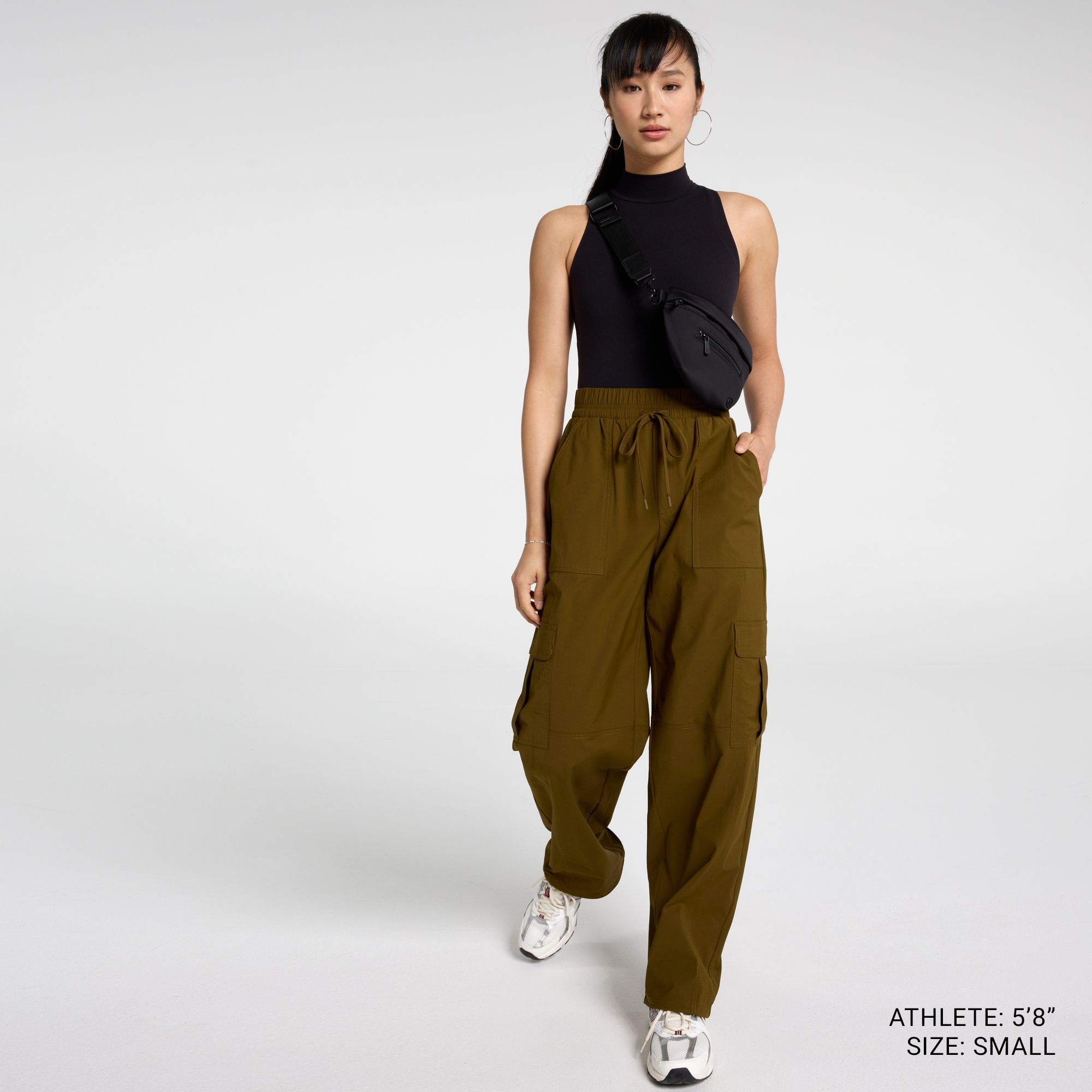 This is the perfect mixture of streetwear and bohemian style, with flowing wide leg that cinches at the waistband and hem, and cargo pockets to carry what you want close. It’s made with CALIA’s Nyluxe fabric, meaning the structured drape can go from casual to elevated with a simple change of accessories.
