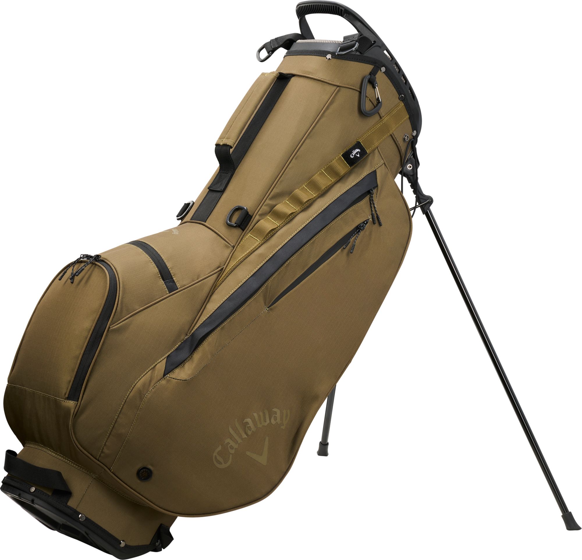 The Callaway 2024 X-Series Stand Bag is a top choice for golfers seeking both functionality and style. Featuring a 5-way top with an integrated carrying handle, this bag offers ample storage with its 6-pocket design, including a water bottle pocket, apparel pocket, and valuables pocket. Designed for durability, it includes a sturdy collapsible leg system and multiple carrying handles for easy transport on and off the course.