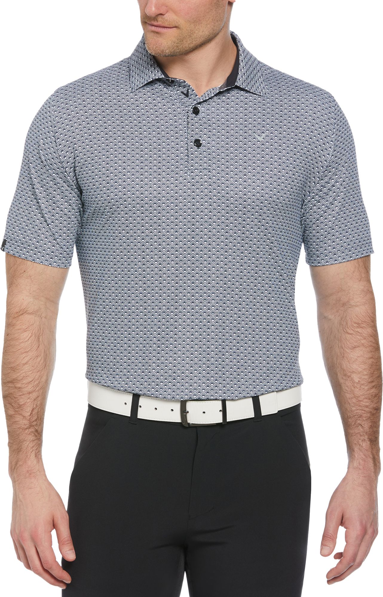 Covered with the trademark Callaway chevron, this men’s golf shirt will add sophisticated style to your athletic outfits. Great for everything from competitive rounds to everyday errands, this versatile, easy-care Callaway shirt is crafted from a lightweight single knit fabric. It has added stretch and Swing Tech™ technology to help ensure a comfortable fit and a full range of motion. Built-in sun protection helps to guard against damaging UV rays, while Opti-Dri™ transfers moisture away from your body to help keep you dry. For an eco-friendly twist, the golf polo shirt is made from 90% recycled polyester.