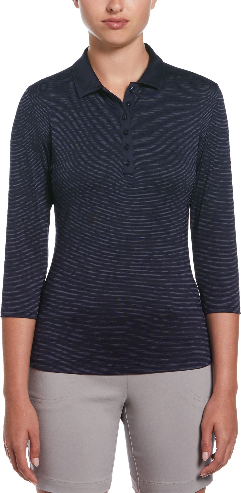 This Callaway Apparel's golf polo delivers style and protection in a soft and stretchy jersey fabric. The 3/4-sleeve length provides comfortable coverage with built-in UPF 50 to safeguard against the sun's harmful rays. Opti-Dri™ technology in this golf top wicks away sweat so you can stay dry while you play, and SwingTech™ technology helps you enjoy a full range of motion for a smooth swing every time.