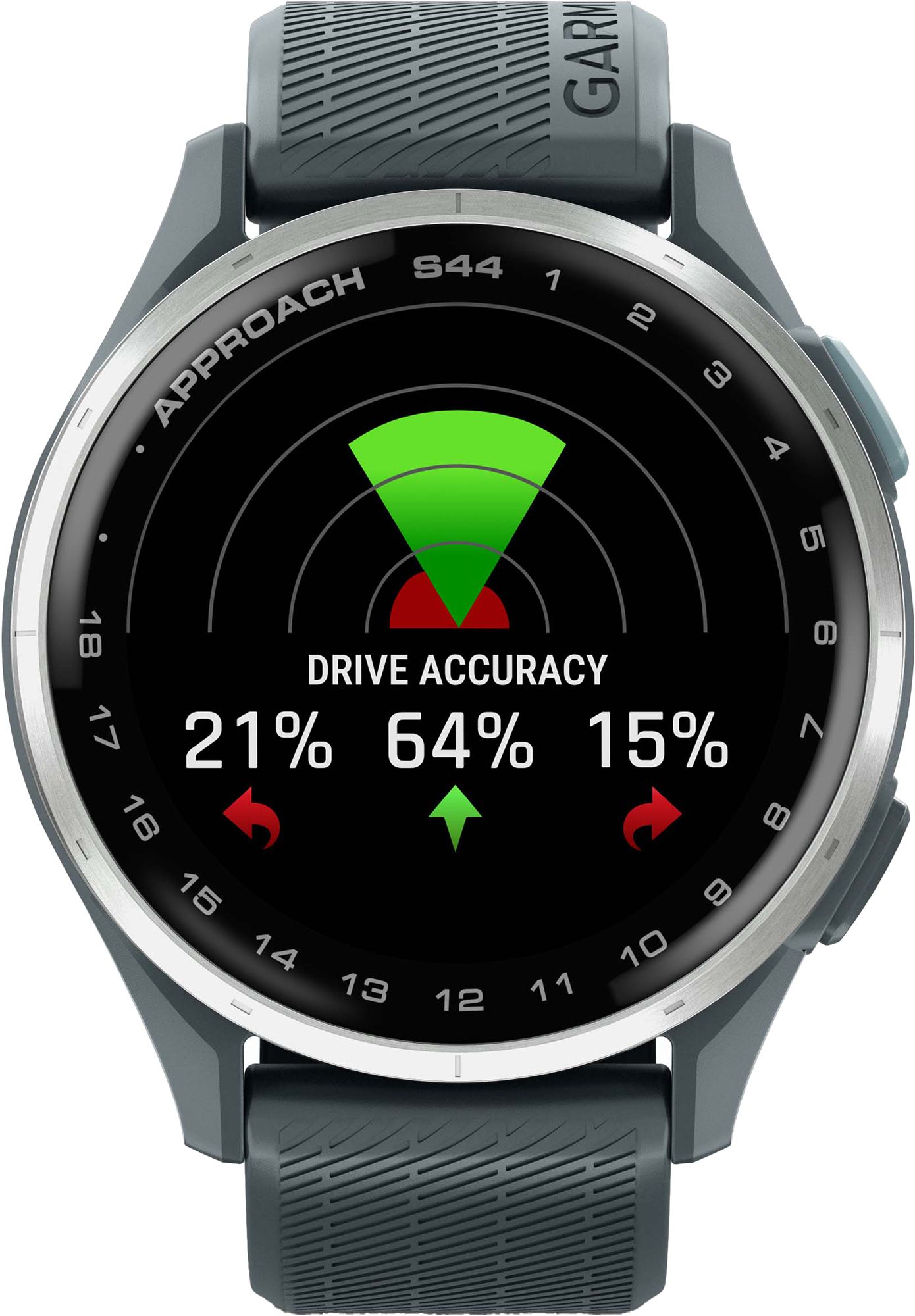 Garmin's got your game with Approach® S44, the slim, lightweight golf watch with all the essential features. Its bright 1.2” AMOLED display makes it easy to see key yardages to the green, hazards and doglegs on 43,000+ preloaded courses worldwide. Keep score from the watch itself and upload directly to the Garmin Golf™ smartphone app for advanced stat tracking. And with up to 15 hours of battery life in GPS mode, you can play another round without needing a charge.