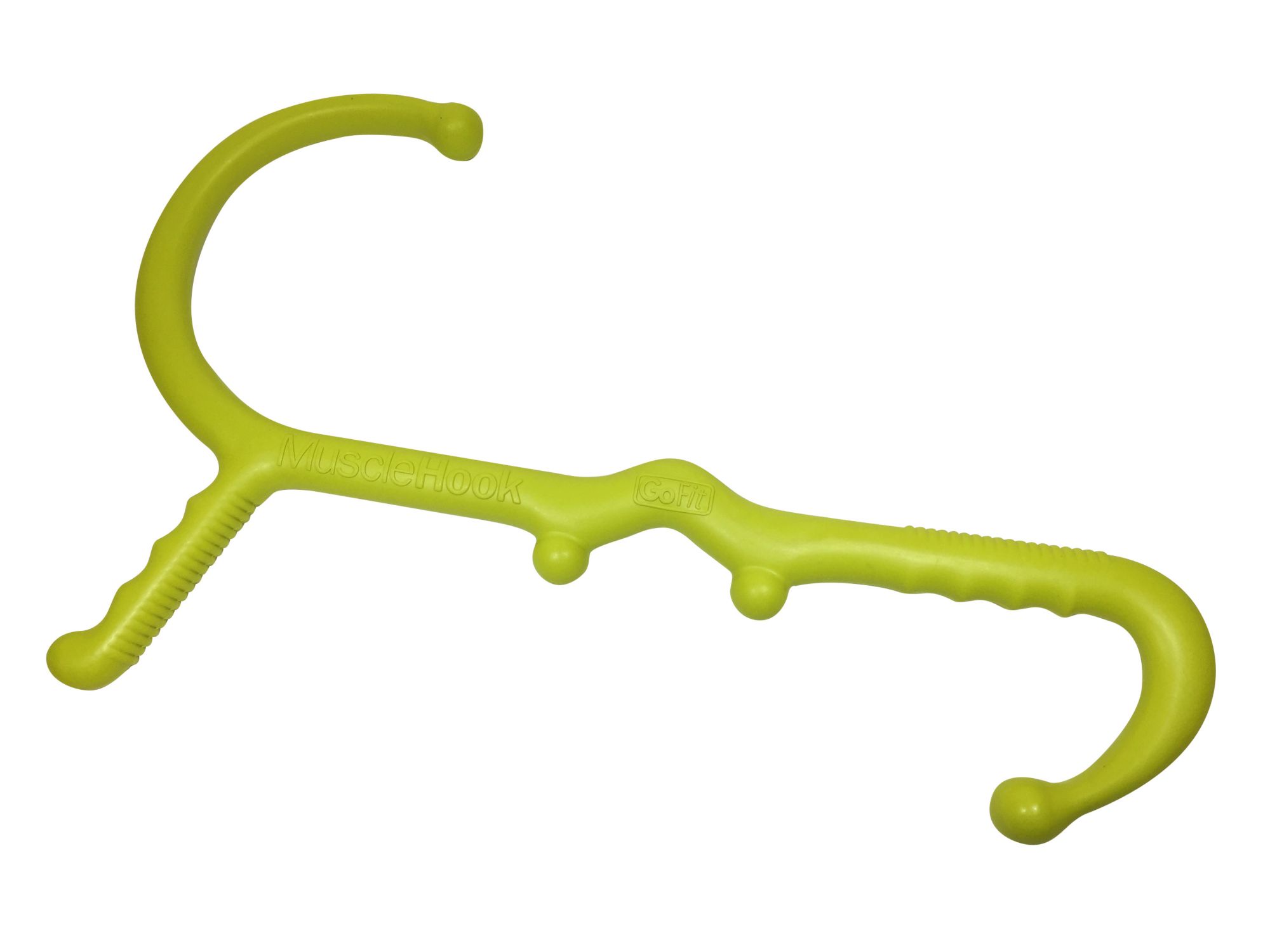 Target sore trigger points for relief when you use the GoFit® Massage Hook. The rounded knobs simulate the action of a massage therapist’s thumbs and unique hooked configuration allows you to reach tight muscles over the entire body.