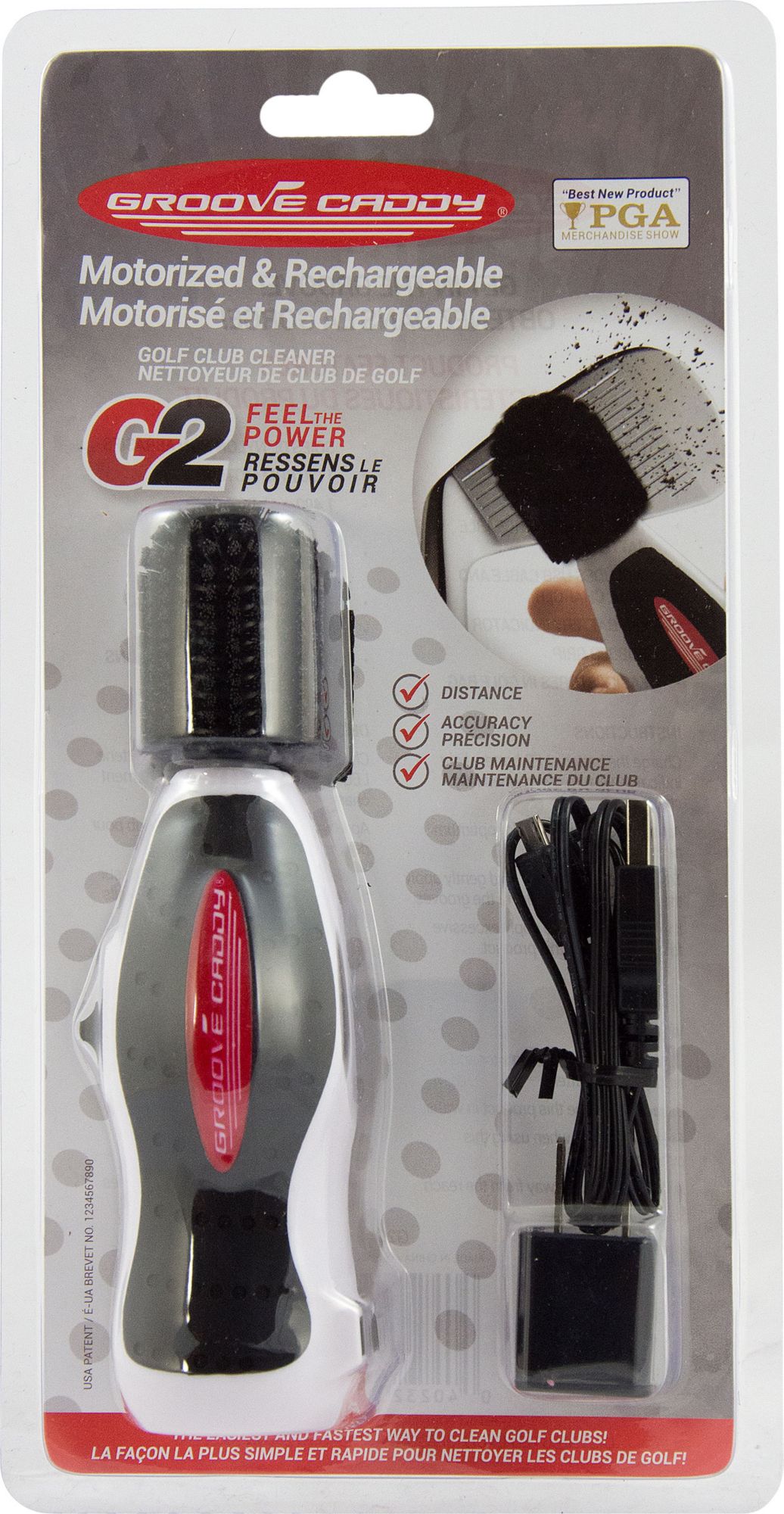 Say goodbye to manual scrubbing with the Groove Caddy Golf Club Cleaner. The handheld, motorized device uses non-abrasive nylon bristles to quickly and more effectively polish the grooves of your golf clubs, ensuring you're making the cleanest contact possible on every swing. A rubber grip enhances comfort during use, and the rechargeable battery completes an ultra-convenient option for the course.
