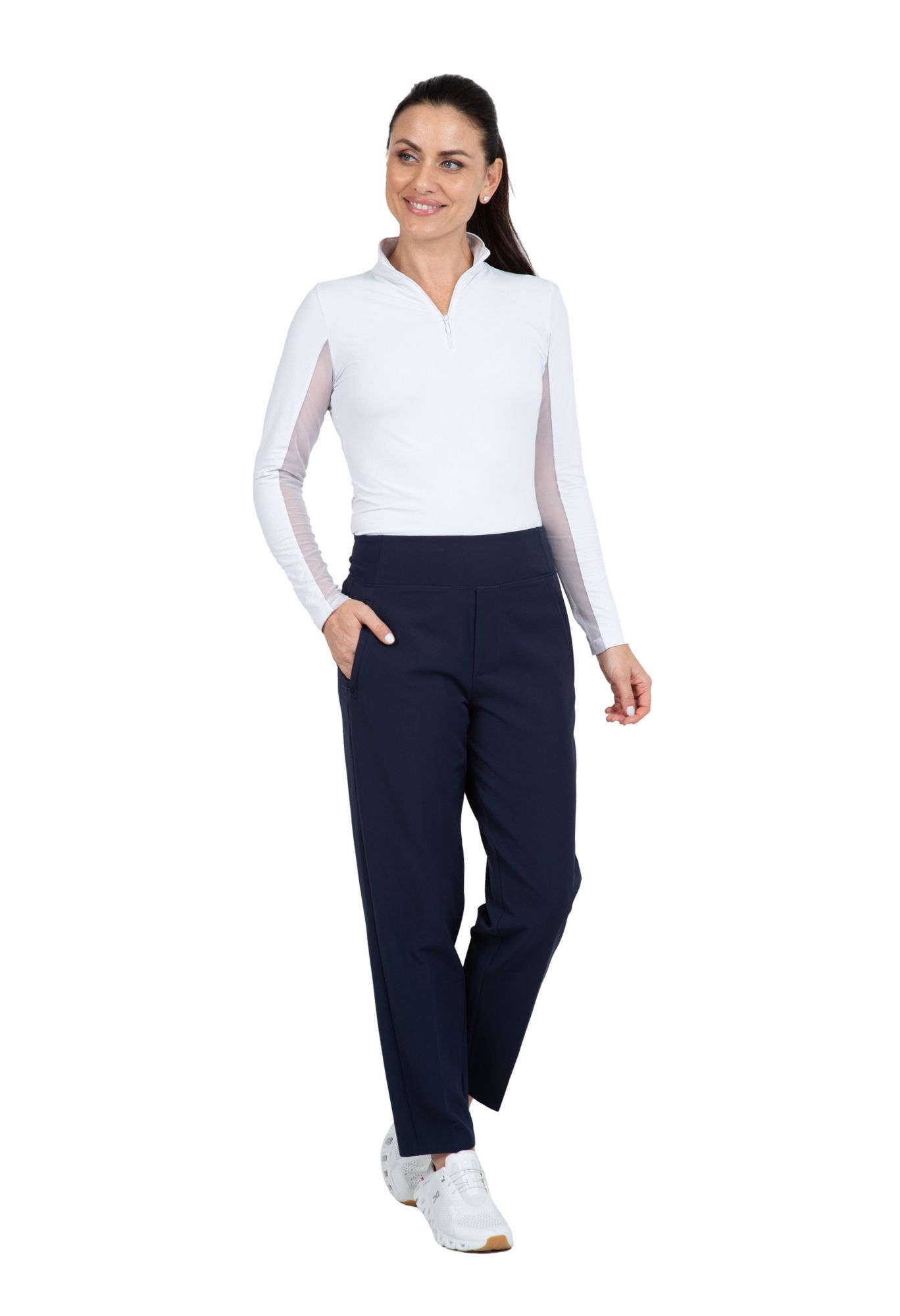 This everyday pant blends style with performance, designed to keep up with your active lifestyle. This sleek design features a stain-resistant, 4-way stretch, wrinkle resistant fabric, ensuring you stay stylish while remaining comfortable on the move. The deep front and back pockets keep all your essentials secure and easily accessible, making this silhouette a wardrobe staple.