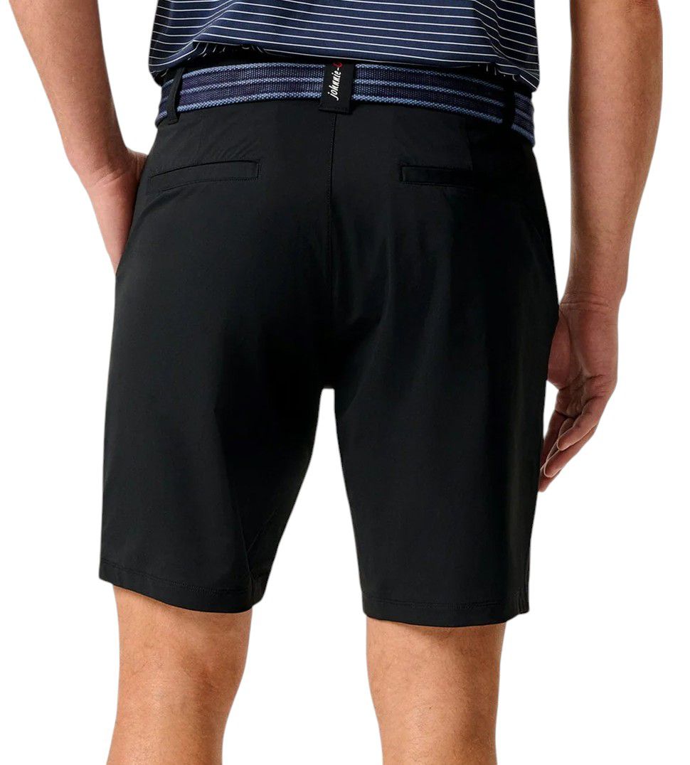 Perfect for the course, this short is designed to look the part of a chino style with a faux button at the front but is made with stretch-knit fabric and an elasticized waist like a classic performance short.