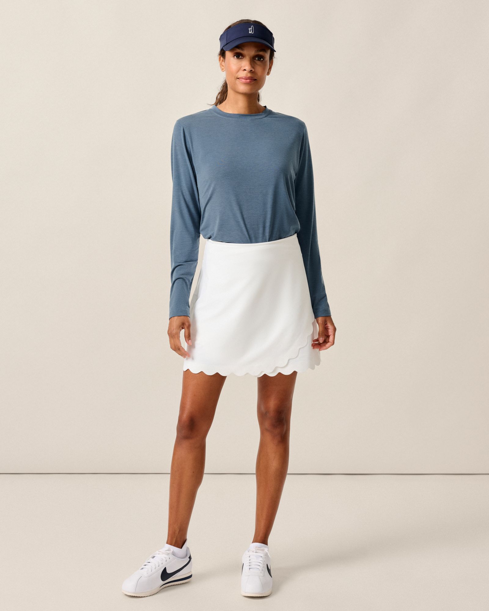Built for performance with a lovely little scalloped hem detail, this premium skort over indexes on useful details like a hidden zip card pocket.
