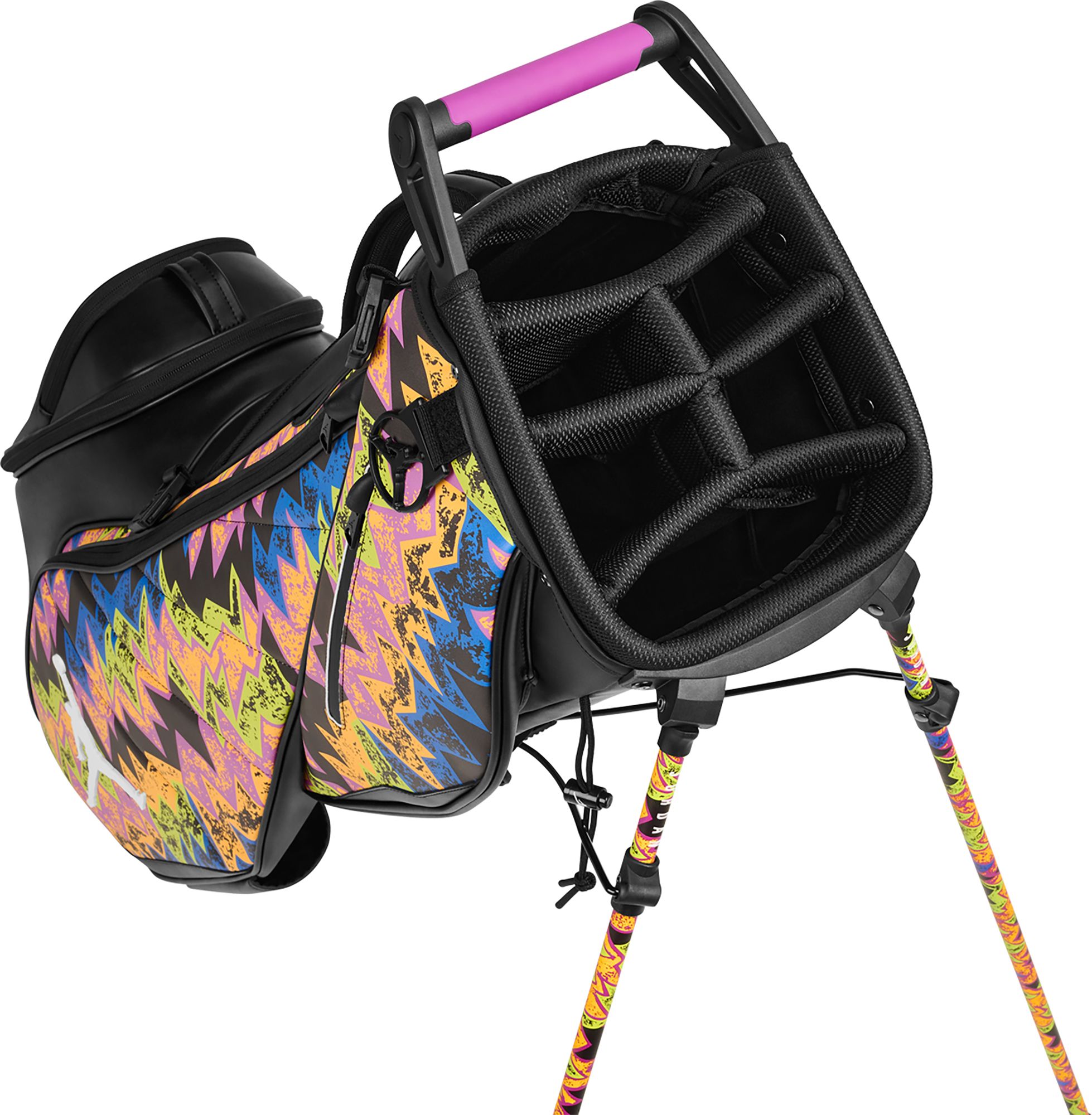 Hit the green with the right gear. From top to bottom, the Jordan Golf Bag has everything you need to knock in that hole-in-1. From its extensive 6-way divider system to the Air Jordan-inspired touches made to hold your towel and umbrella, you'll be carrying the bag that will help level up your day on the course.