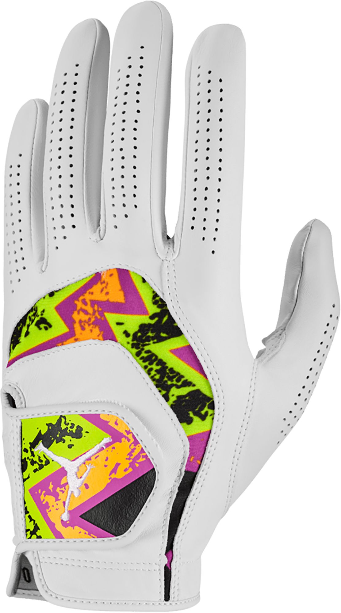 Please Note: Each Jordan Tour Energy glove features a unique back-of-hand print. Due to the nature of the print execution, no two gloves are exactly alike. Color variations may include combinations of orange, blue, black, green, pink, and other hues depending on how the material was cut. This intentional design ensures every glove is one-of-a-kind. The product image shown is representative, but actual color placement may vary.