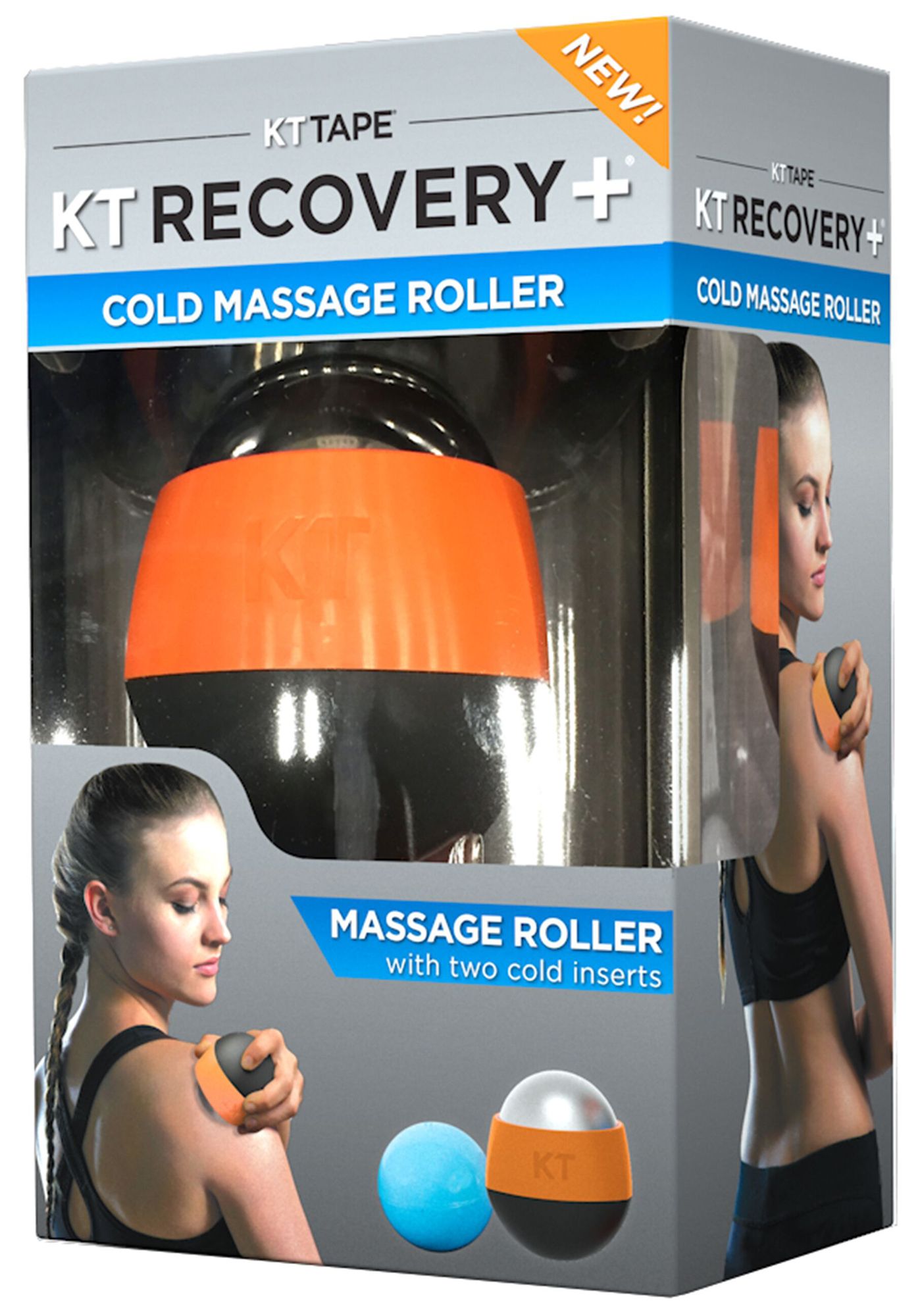 Get the benefits of both deep tissue massage therapy and cold therapy with the KT Tape® Recovery+ Cold Massage Roller. The massage ball’s unique design allows for specifically engineered cold inserts for the benefits of cold therapy. This unique recovery tool was designed with physical therapists, massage therapists, and Chiropractors to cover a wide range of recovery needs.