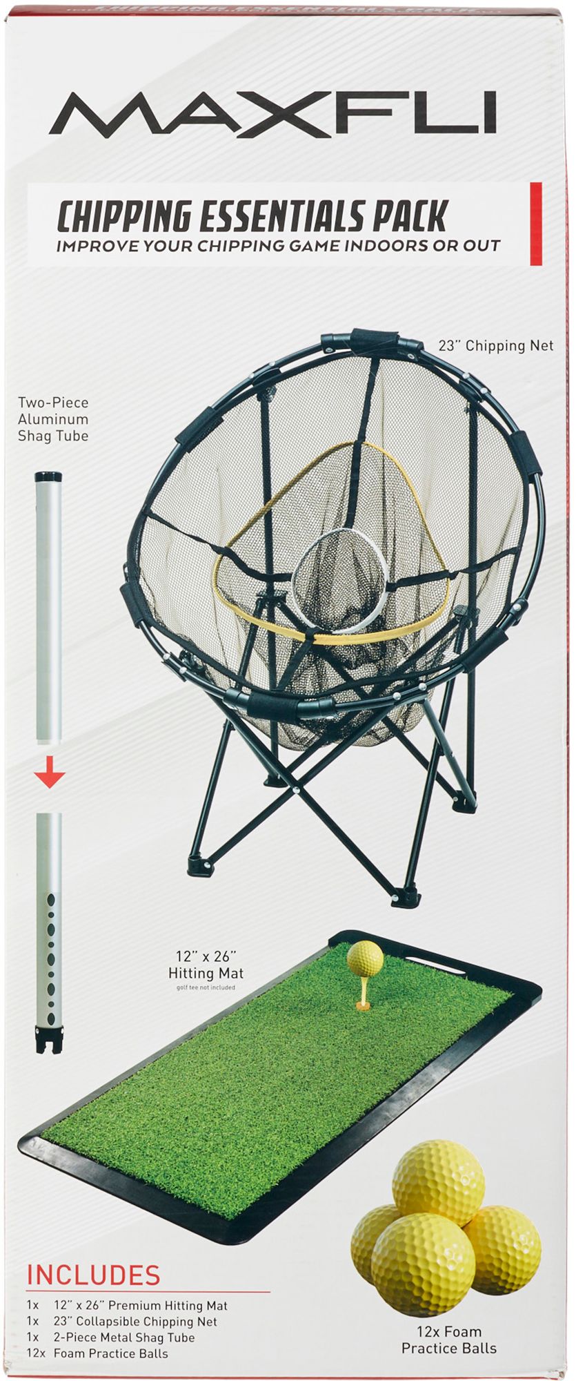Elevate your short game with the Maxfli Chipping Essentials Pack, the ultimate training set designed to improve your chipping skills indoors or outdoors. Whether you’re perfecting precision shots in your living room or sharpening your technique in the backyard, this all-in-one kit delivers everything you need for consistent, confident chips. Featuring a premium hitting mat, collapsible chipping net with multi-tier targets, and soft foam practice balls, you’ll enjoy realistic feedback without damaging surfaces. Compact, portable, and easy to set up, this pack turns any space into your personal short-game practice zone.