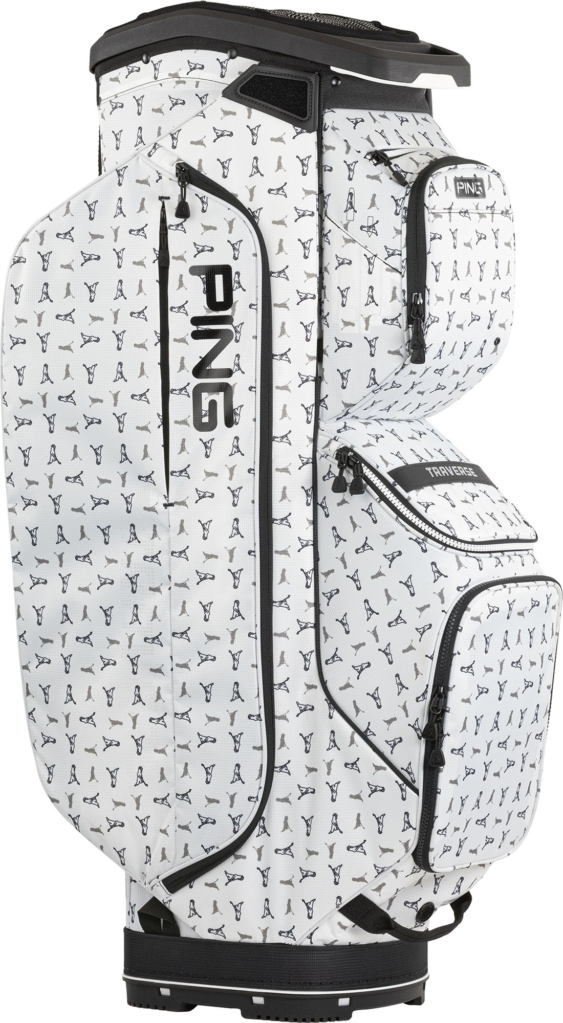 The new-and-improved, highly organized Traverse is ready to roll, offering a re-designed 14-way top that safeguards clubs, including the putter, which gets its own well. A rangefinder pocket with dividers is one of 15 pockets, which are easier to access due to its tiered pocket design. Its efficient design and construction results in a bag weighing only 6 lbs.