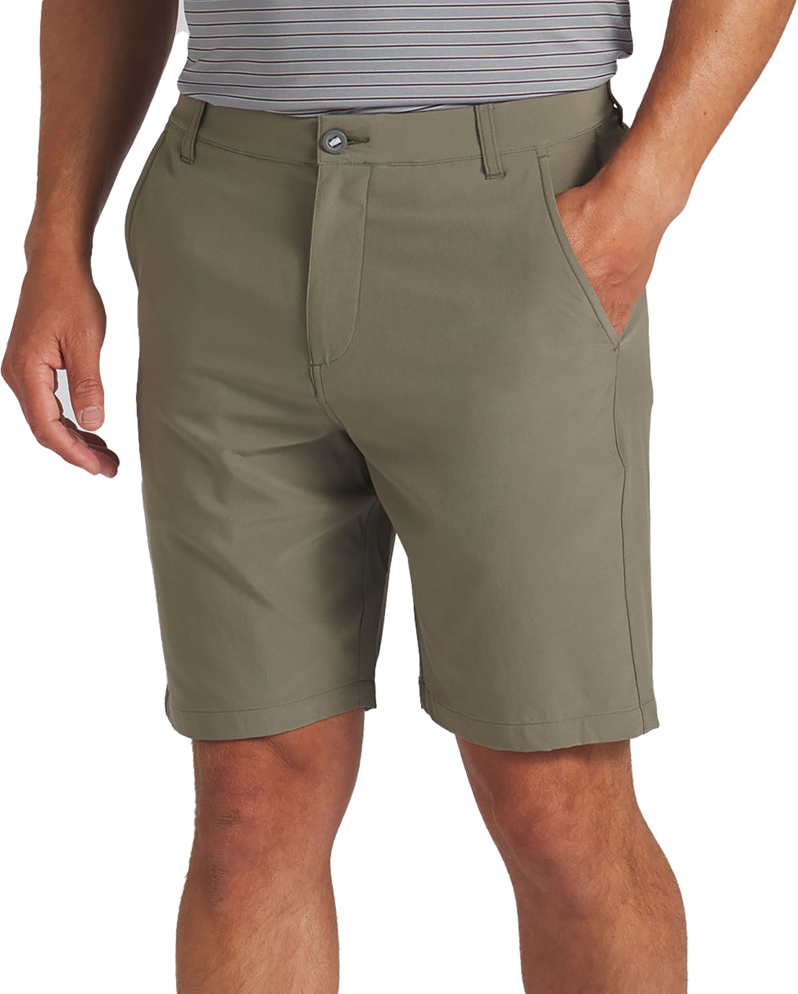 I find the Puma golf shorts to have the perfect length. Not too short and don’t land beyond my knee. They are extremely soft too!!