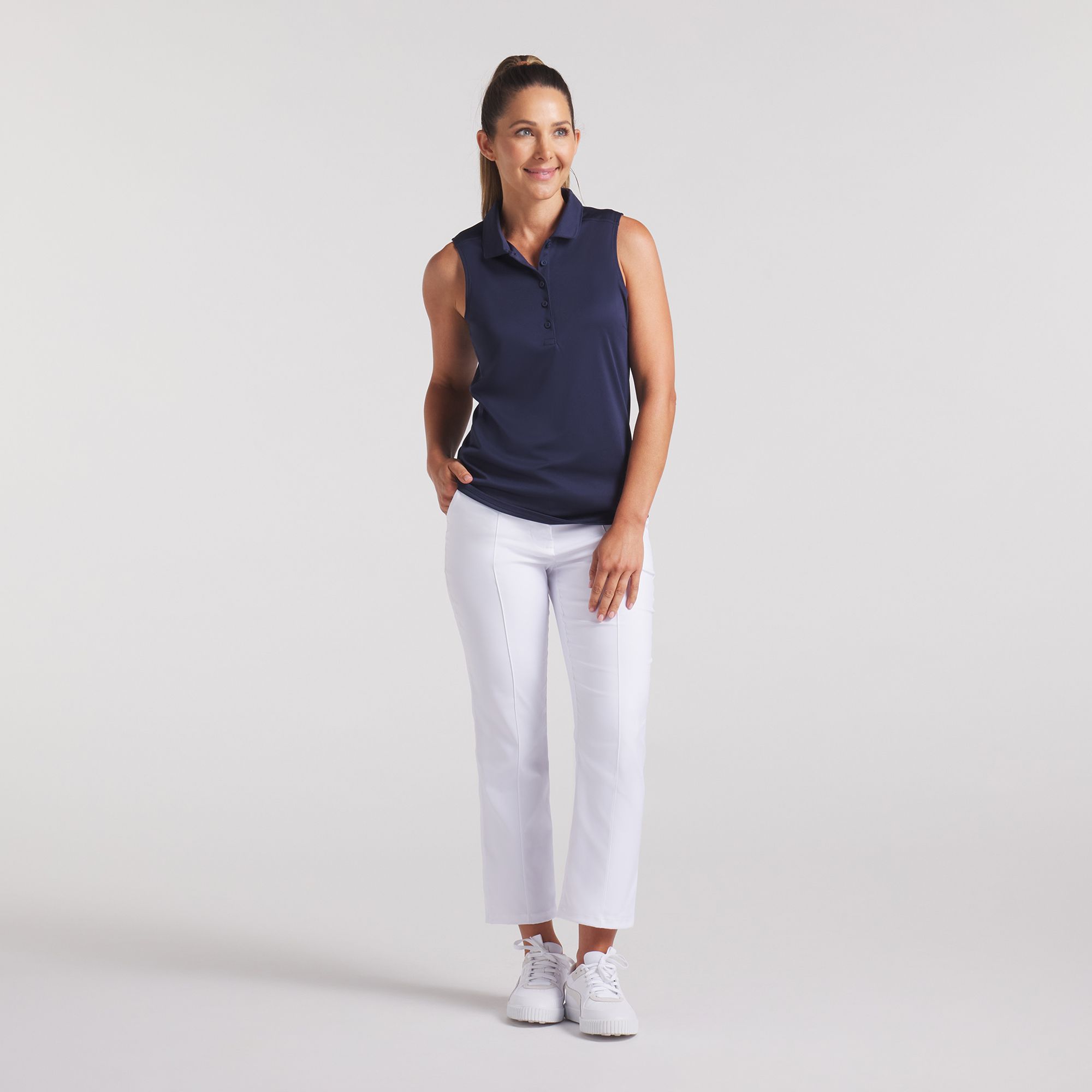 Protection from the sun, freedom to play. Upgrade your wardrobe with the ultimate golf essential, featuring sweat-wicking, 4-way stretch fabric that feels like a breath of fresh air. Made with 100% recycled materials (excluding trims and decor) for the future of golf.