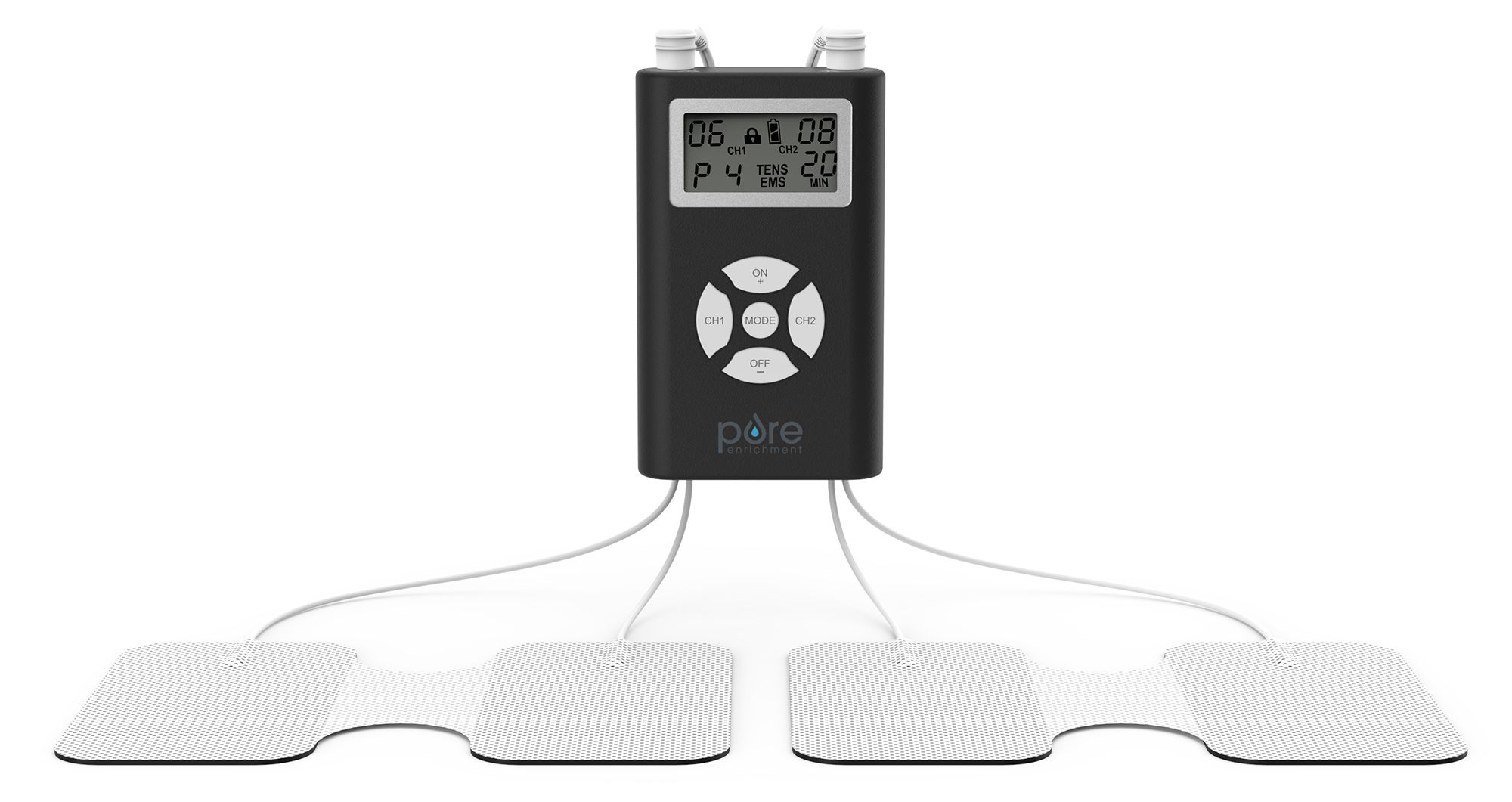 The Pure Enrichment® PurePulse Duo EMS & TENS Therapy System helps to naturally relieve muscle and join paint. This natural therapy is ideal for treating stiffness, aches and pain in your shoulders, neck, back, waist, legs, arms, and more. TENS/EMS treatments help improve post-workout recovery time or relieves muscle tension caused by stress. Safe to use for daily treatments.