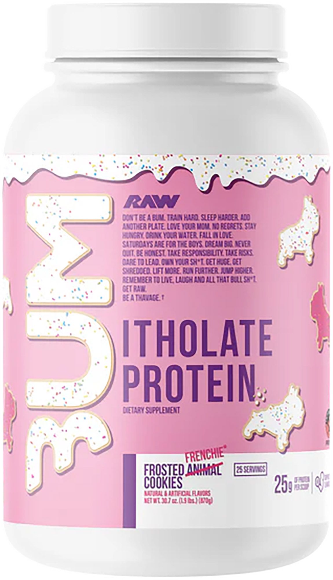 25g of high-quality, grass-fed whey protein isolate per scoop
