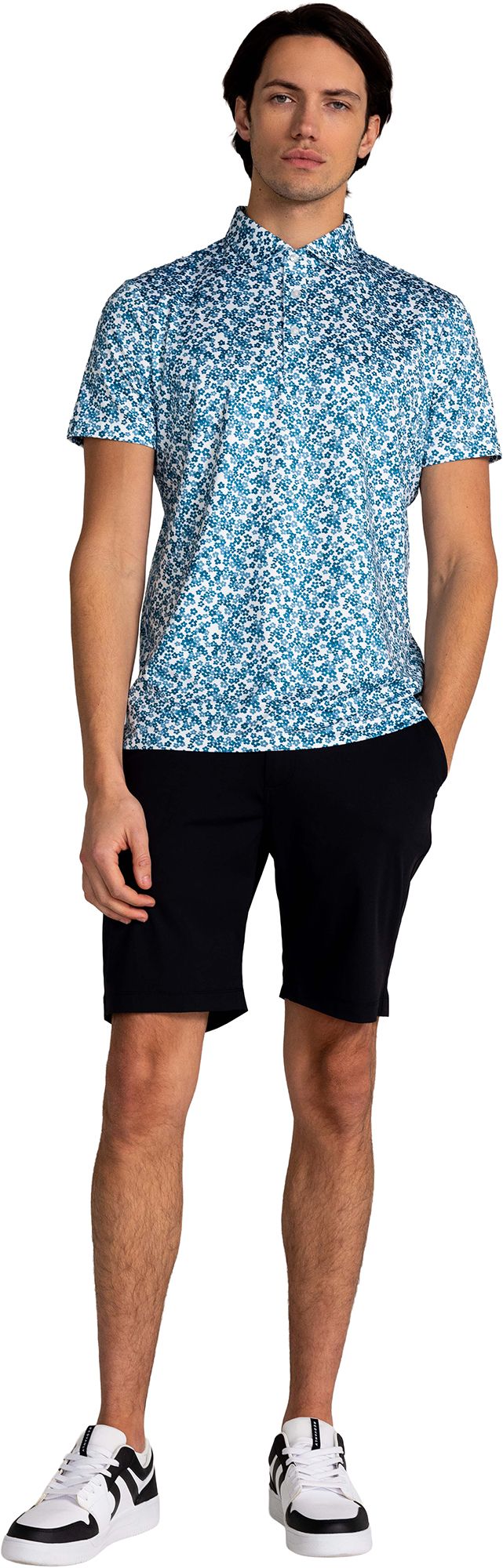 Bright and bubbly, the Clos Polo features a lively floral pattern in tonal colors for added depth and flair. Featuring a spread self-collar and three-button placket front closure, it perfectly balances polish and pizzazz.