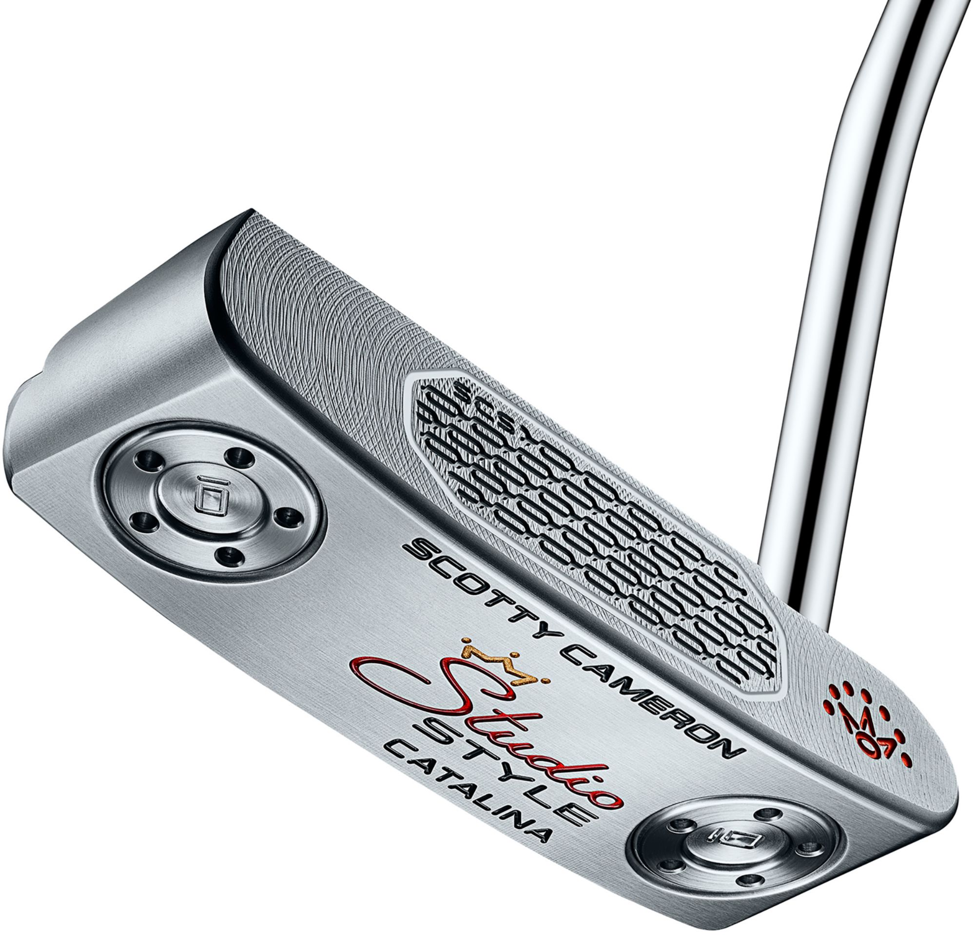 In an updated, modern rounded design including a new black anodized aluminum heel-toe inlay for enhanced alignment and MOI, the near-face balanced Studio Style Fastback delivers soft sound and feel with its Studio Carbon Steel (SCS) face insert and chain-link face milling technology. The sole’s draft angle was re-engineered to ensure that the putter sits perfectly square at address. And with its integrated 6061 aircraft aluminum sole plate and customizable stainless steel sole weights, the precision milled Fastback crafted from 303 stainless steel is a compact multi-material mallet designed for improved alignment, soft sound and balanced feel. Signature translucent red cherry dots and an elegant engraved 7 Point Crown complement the striking new features of this performance-packed compact mallet putter.