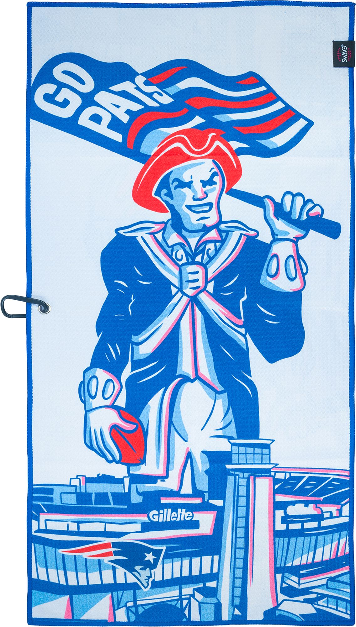 Bring Patriots pride to every round. This New England Patriots golf towel features bold artwork inspired by the team’s iconic revolutionary spirit, paired with classic red, white, and blue details. Designed to clip easily to your bag, it is lightweight, durable, and ready for all playing conditions. Perfect for cleaning clubs, drying hands, and repping New England from the first tee to the final hole.