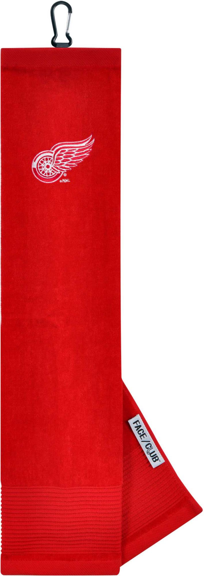 Ingenuity meets versatility to form the Team Effort Detroit Red Wings Embroidered Face/Club Tri-Fold Towel. This dual-textured towel features woven ribs designed to remove dirt from your clubs and a highly absorbent, sheared velour panel to wick away moisture. A carabineer clip located on top secures the towel to your bag or cart for maximum convenience. A boldly embroidered, full-color team trademark shows everyone on the course your support for the Red Wings .