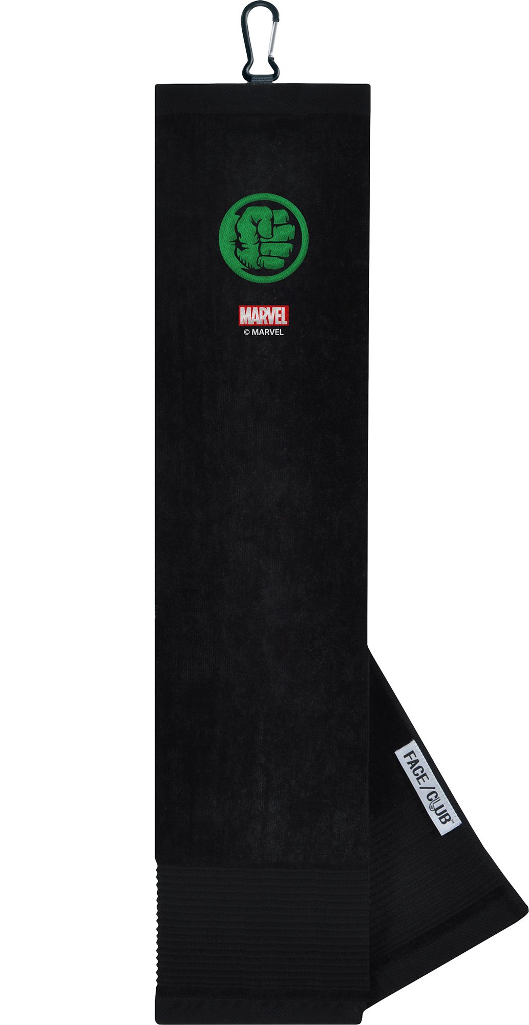 Ingenuity meets versatility to form the Team Effort Embroidered Face/Club Tri-Fold Towel. This dual-textured towel features woven ribs designed to remove dirt from your clubs and a highly absorbent, sheared velour panel to wick away moisture. A carabineer clip located on top secures the towel to your bag or cart for maximum convenience. Boldly embroidered, full-color trademarks show everyone on the course your fandom.