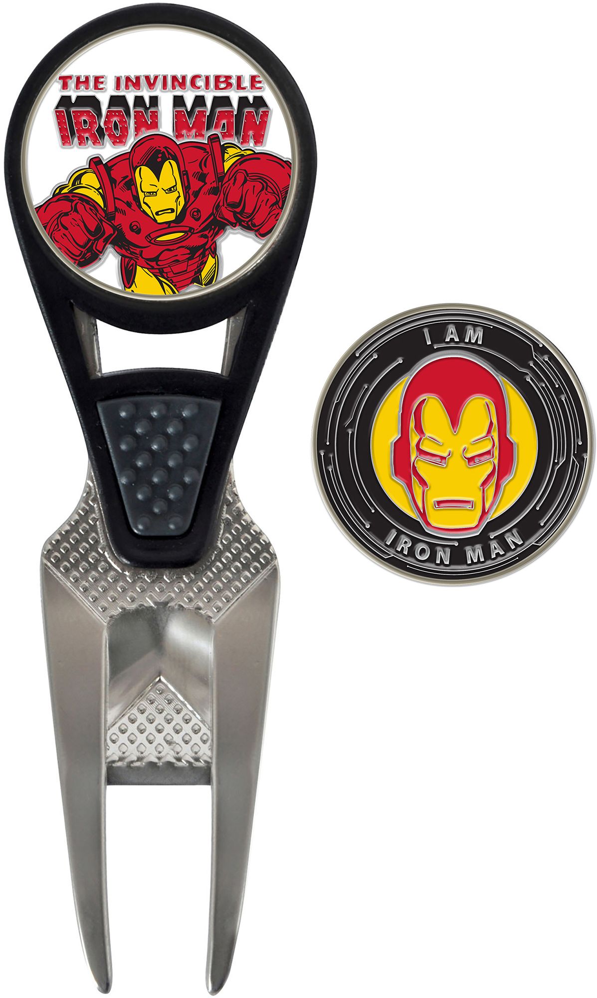 The Team Effort CVX Ball Mark Repair Tool and Ball Marker Set is a must-have accessory on the course. The set includes a sleek CVX ball mark repair tool and one golf ball marker. The marker features high quality, officially licensed designs.