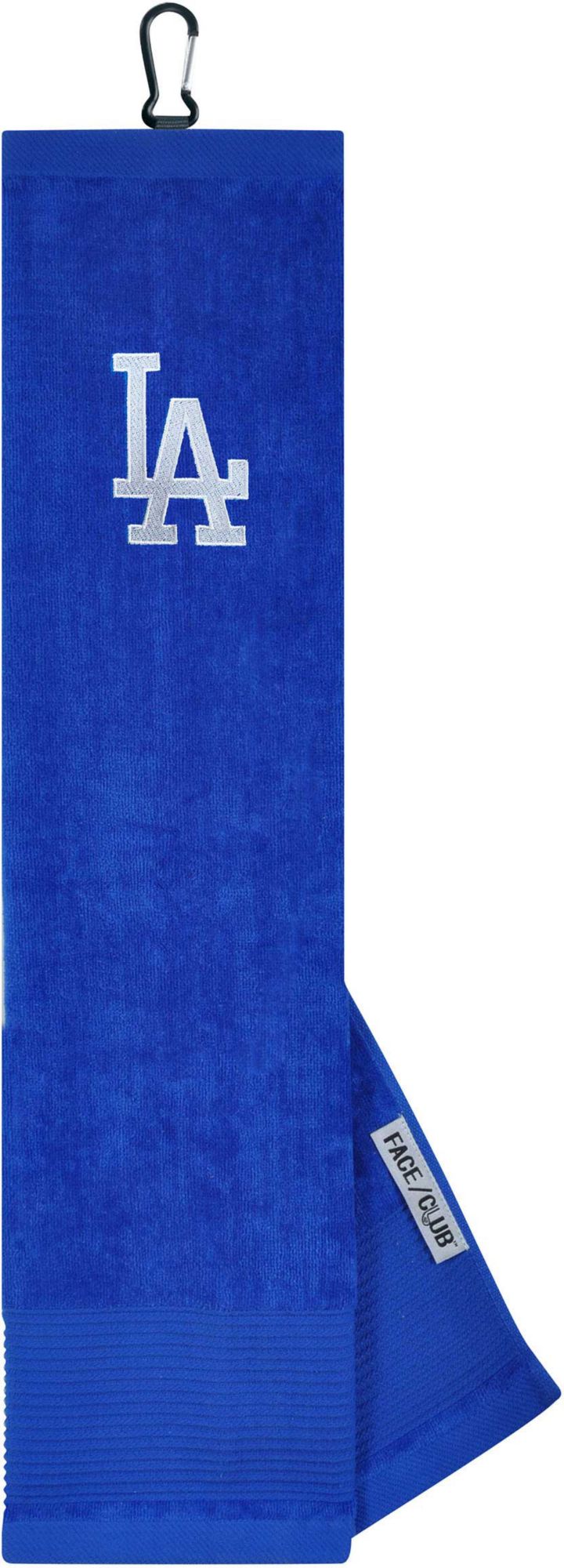 Ingenuity meets versatility to form the Team Effort Los Angeles Dodgers Embroidered Face/Club Tri-Fold Towel. This dual-textured towel features woven ribs designed to remove dirt from your clubs and a highly absorbent, sheared velour panel to wick away moisture. A carabineer clip located on top secures the towel to your bag or cart for maximum convenience. A boldly embroidered, full-color team trademark shows everyone on the course your support for the Dodgers .