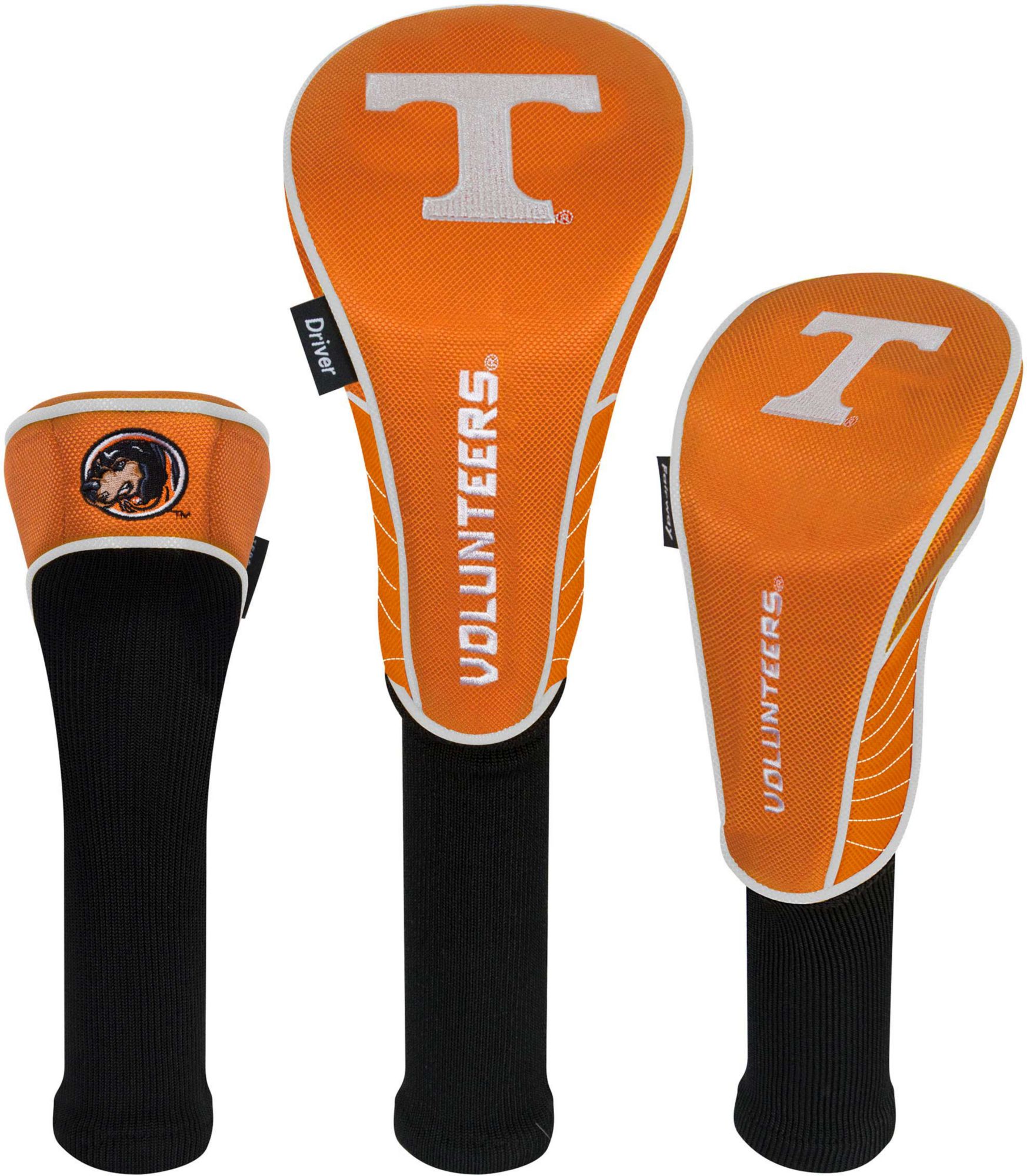 Boldly display your support for the Volunteers by protecting your metalwoods with Team Effort Tennessee Volunteers Headcovers. Specifically designed to fit most driver, fairway wood and hybrid models, each premium headcover is constructed of rugged 420D nylon material and features a long neck design to deliver maximum club protection. Vibrant, contrasting team color elements combine with multiple team trademark embroideries to show your course mates who back on game day.
