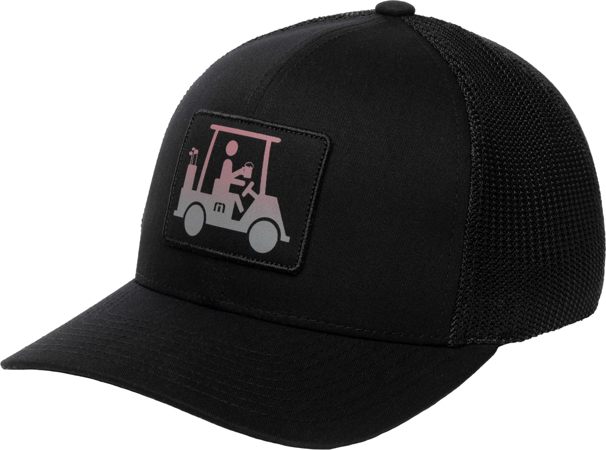 Signature “Mapes” golf cart icon patch with a TravisMathew logo in an ombre style