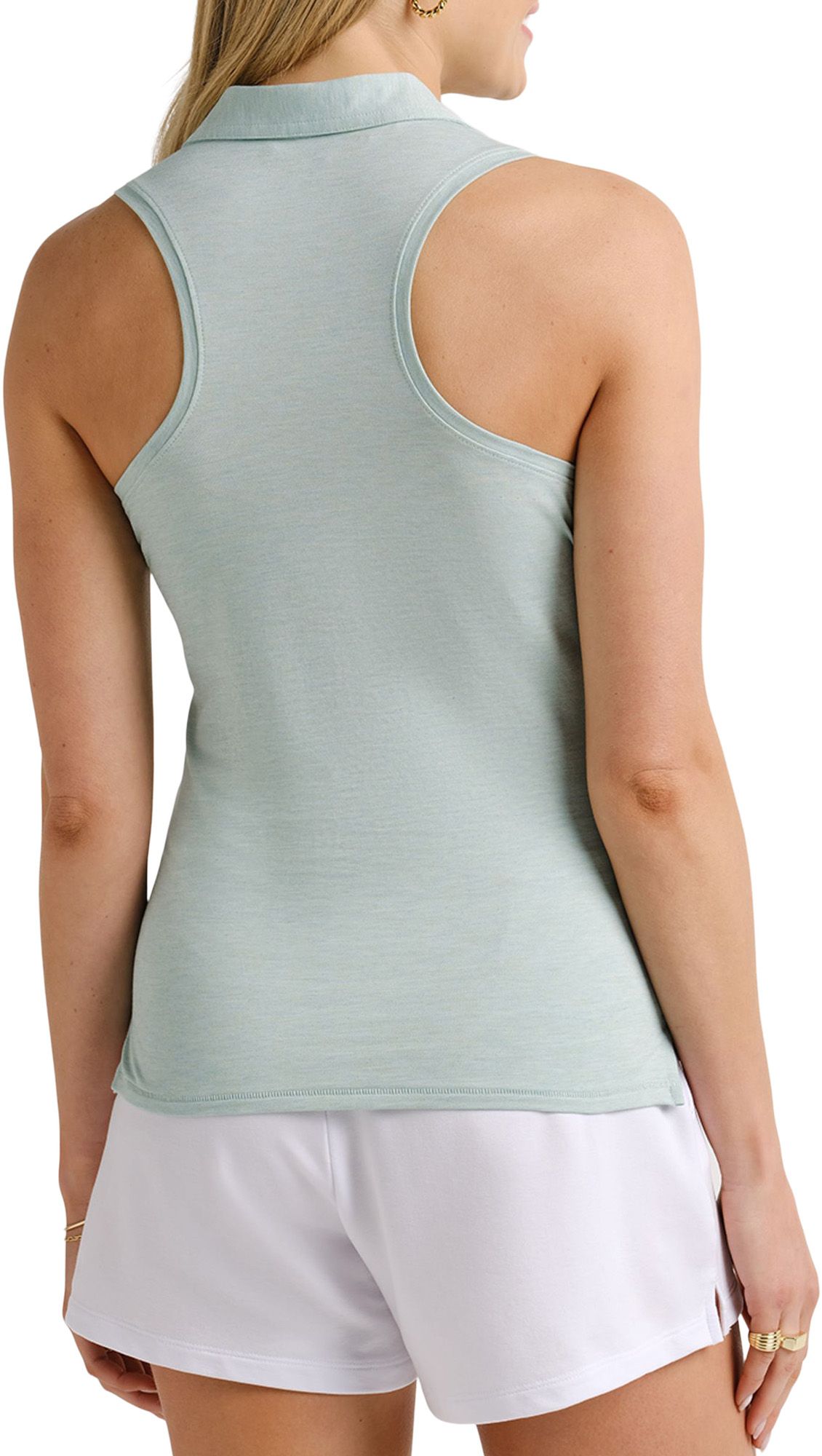 Was skeptical of the material of this sleeveless polo with purchasing online- When I got the top all my concerns were out the door. This is hands down my FAV golf top, its my go to. Absolutely perfect