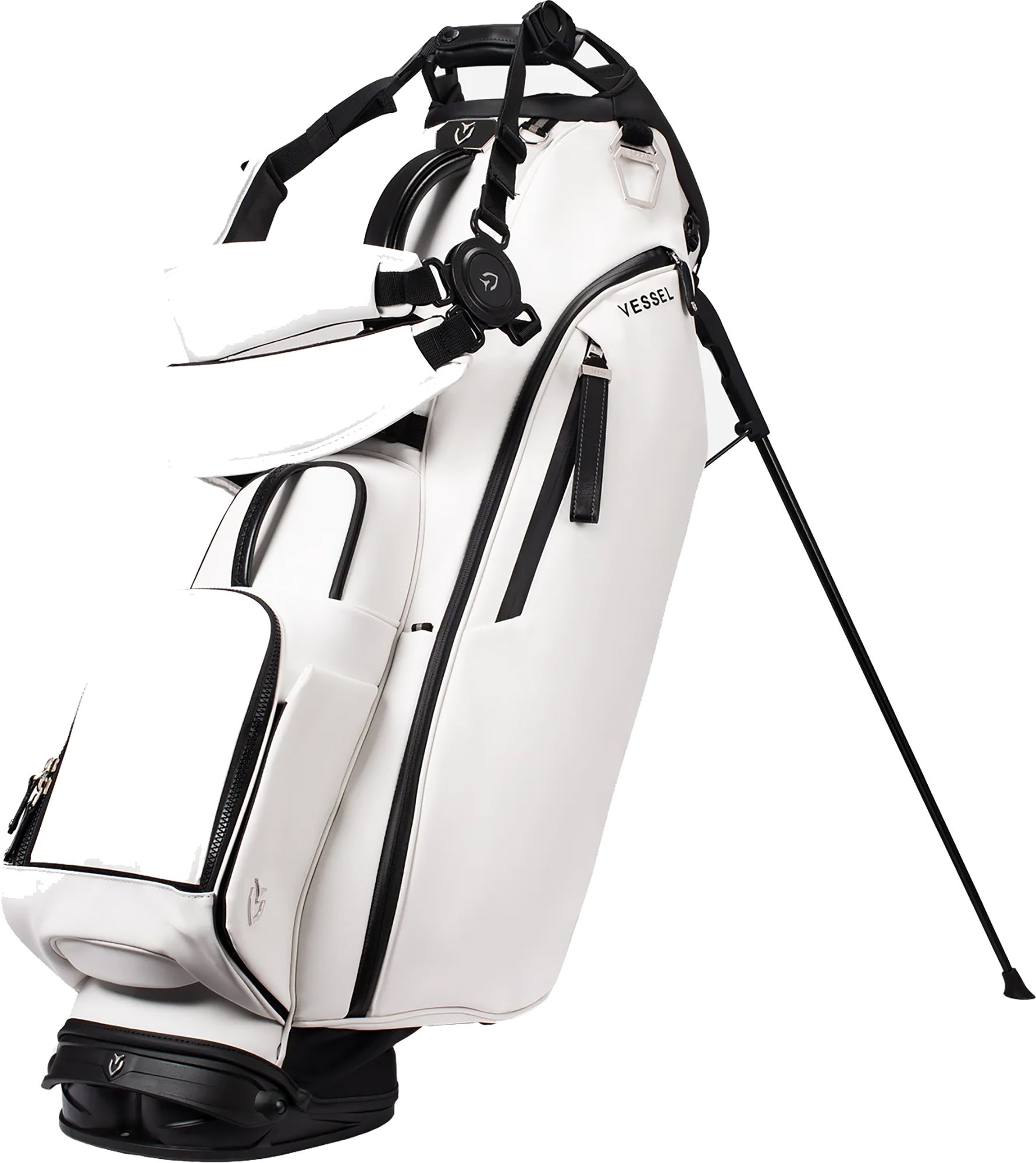Patented Equilibrium 2.0 Double Strap features an 8-point swivel mechanism which self-adjusts to each golfer’s gait