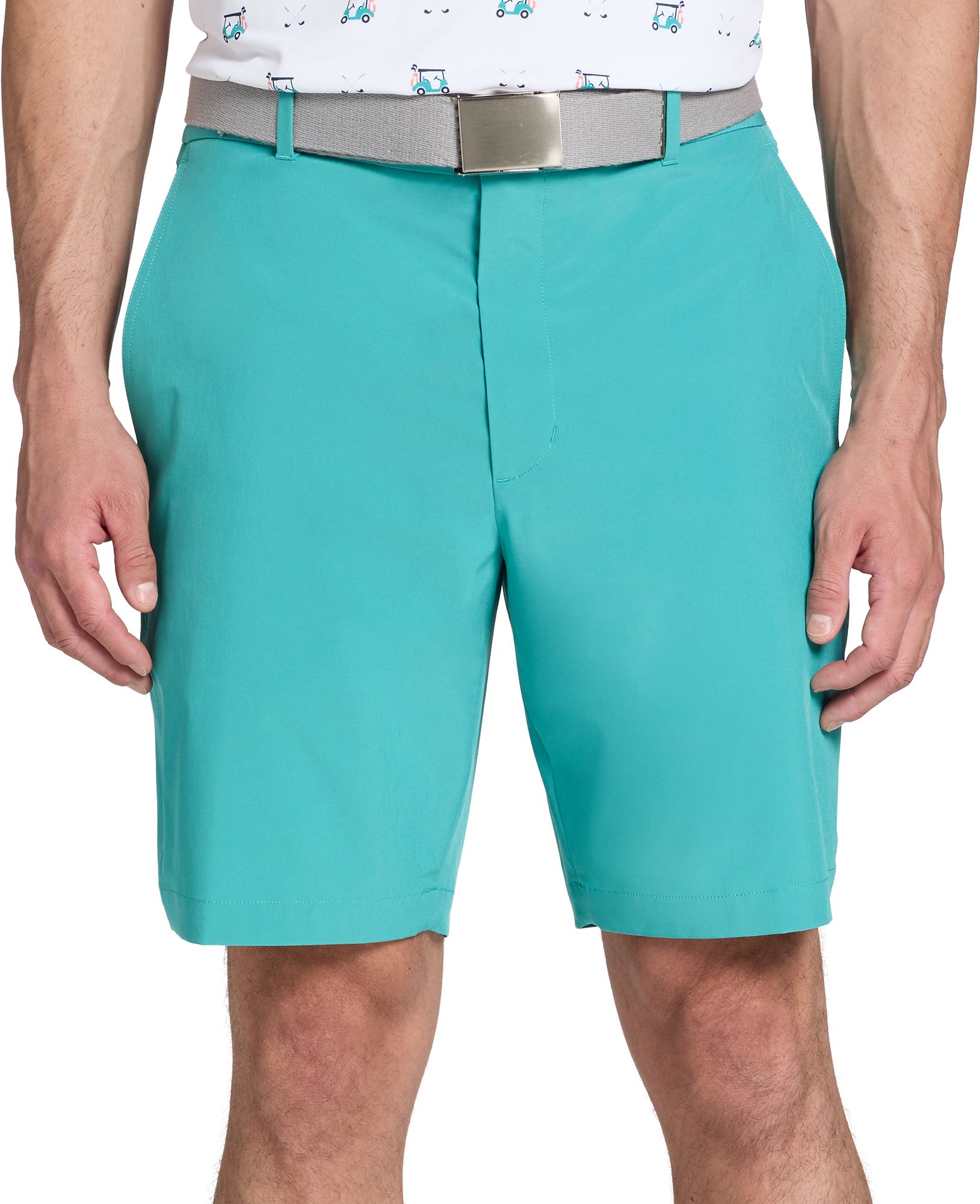 Experience ultimate comfort and mobility on the golf course with the Walter Hagen Performance 11 PureFlex 9" Golf Short. Designed with a regular fit and rise, these shorts feature multi-directional stretch fabric that moves with you, ensuring you stay comfortable during your swing and throughout the day. The breathable material and elastic waistband provide a perfect fit, while the back pockets offer convenient storage for your essentials.
