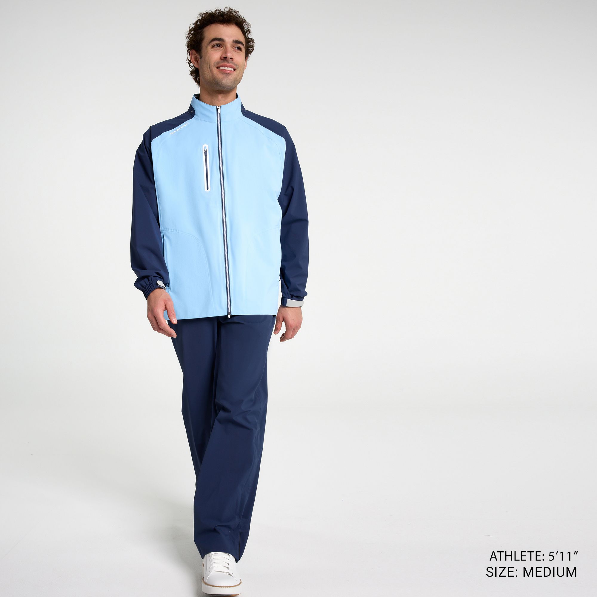 A sleek rain jacket that provides a high level of protection from the elements. Seam sealed waterproofing works together with the two-way zipper and adjustable cuffs to keep moisture out, so bad weather can’t drive you off the course.