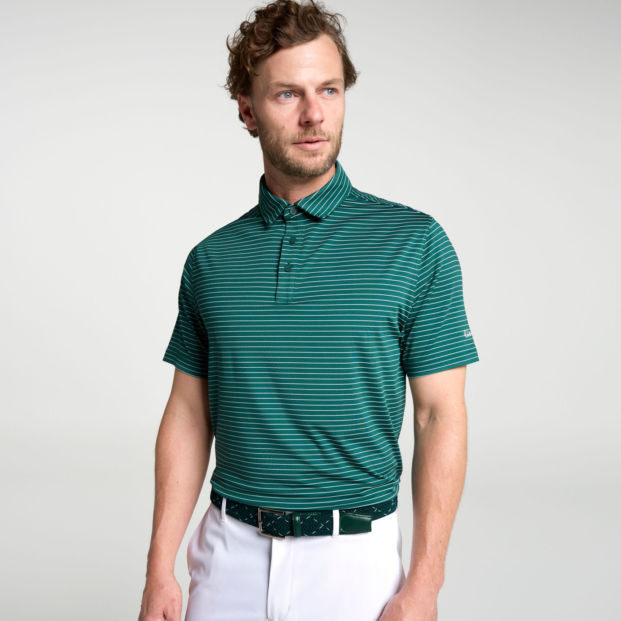 Elevate your golf attire with the Walter Hagen Men's Performance 11 Classic Stripe Polo. Designed with soft, breathable fabric and 4-way stretch, this polo ensures all-day comfort and full range of motion for every swing. Featuring moisture-wicking technology, UPF 50+ sun protection, and a wrinkle-resistant finish, it keeps you looking sharp and feeling fresh from the first tee to the clubhouse.
