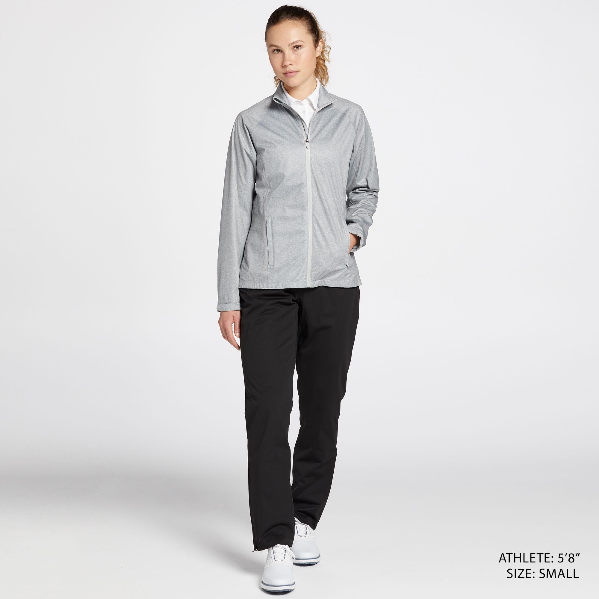 This rain jacket is sleek. The look and design was well thought out. This jacket will keep you dry during those unexpected rain forecast, or expected. The material is soft and comfortable. This is not a bulky jacket. It can easily fit in your golf bag without feeling like it’s taking up extra room. This is a fantastic jacket.