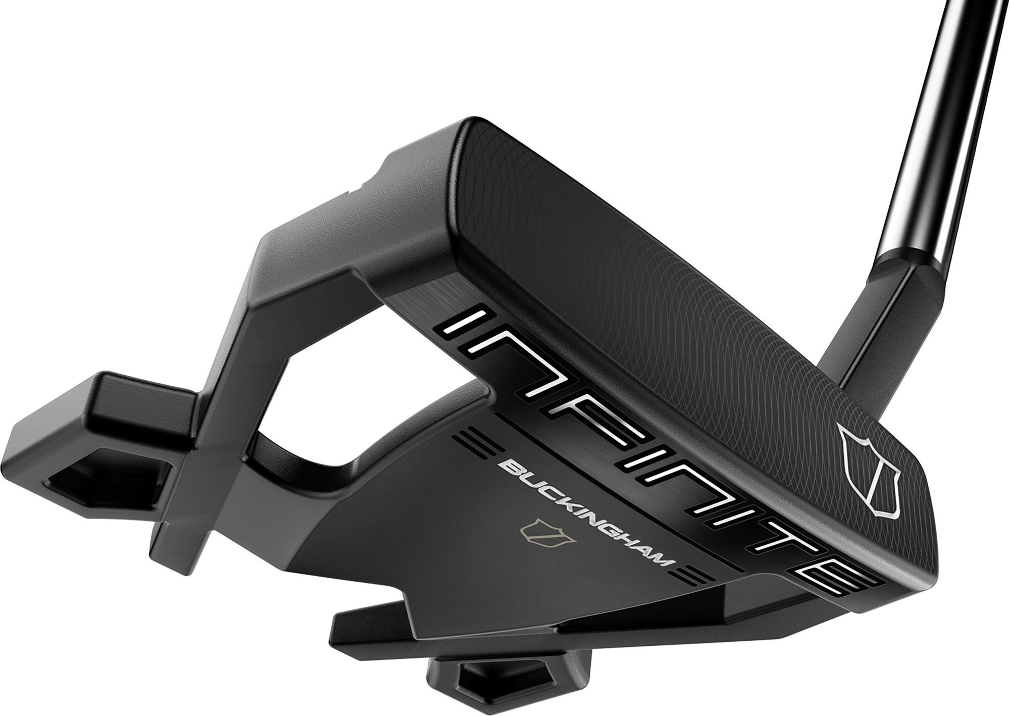 Introducing the Wilson Infinite® Buckingham™ putter, a large mallet in the deluxe Infinite putter collection. Featuring a new midsize multi-textured, no-taper grip which prevents wrist rotation. The Buckingham has an anti-glare finish with triple alignment lines to help keep your eye on the ball while dialing in your focus on every single putt. Its double-milled face promotes consistent ball impact, roll and distance control for short-game success.