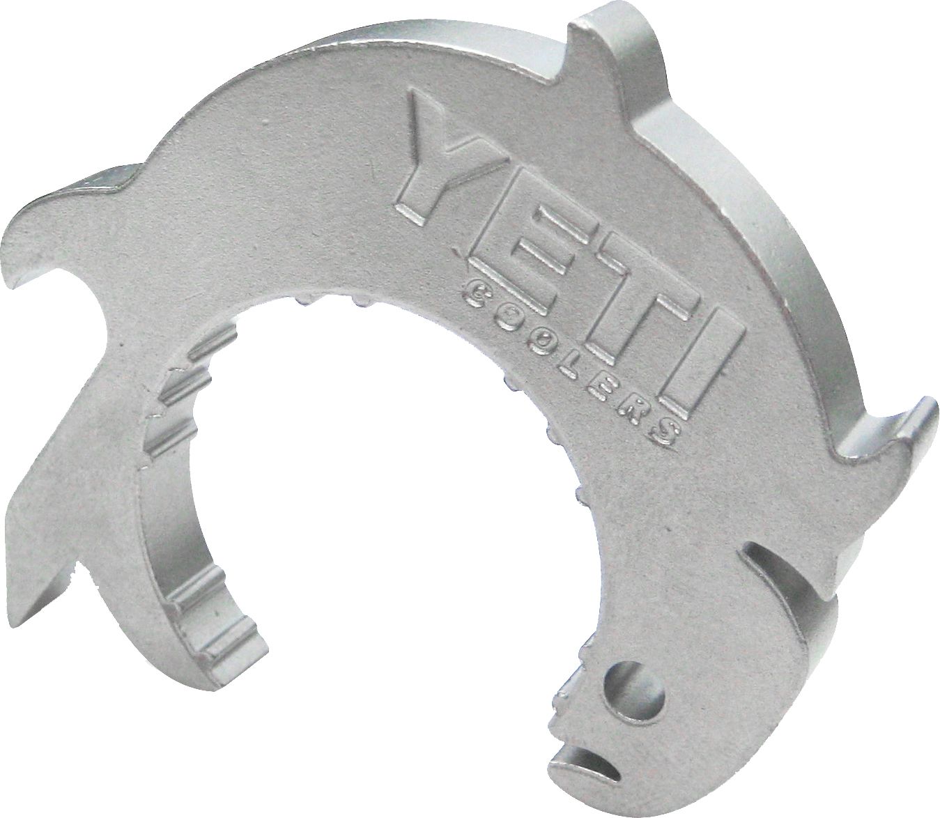 Bring the YETI® Tarpon Beverage Entry Tool Bottle Opener with you to tailgates and outdoor adventures. This bottle opener is no ordinary design. Featuring a jumping tarpon shape, this entry tool offers 3 functions: church key, twist off wrench, and a can tap opener. You can open bottles and cans with no struggle. Made from forged stainless steel, the YETI® Tarpon Beverage Entry Tool is sturdy and strong.